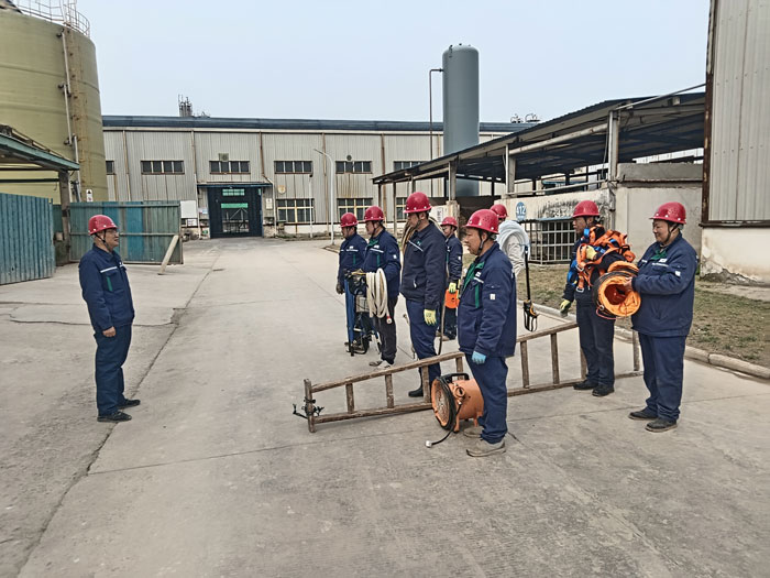 以练促防强本领 四车间筑牢受限空间安全堤 为切实防范受限空间作业事故风险,严格落实2026年度车间应急演练计划要求。近日,四车间在反应成品液池组织开展受限空间作业(中毒、窒息)事故现场应急救援演练,以实战化场景提升突发险情处置能力,筑牢安全生产防线。 演练模拟场景紧贴反应成品液池检维修作业实际,作业人员在池内进行清理时,因聚铝介质解析产生氯化氢