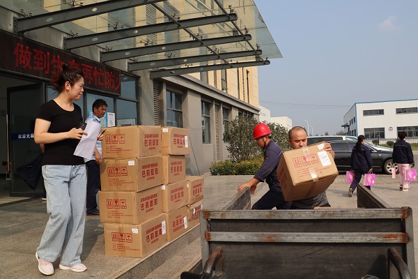 各分会主席开着幸福的小三轮来到现场,把象征着团员、幸福、美满的月饼一箱箱搬运车上,满载着公司工会的祝福,运送到会员手中。一份中秋月饼不仅代表着美好祝福,也体现了公司对员工浓浓的关怀。